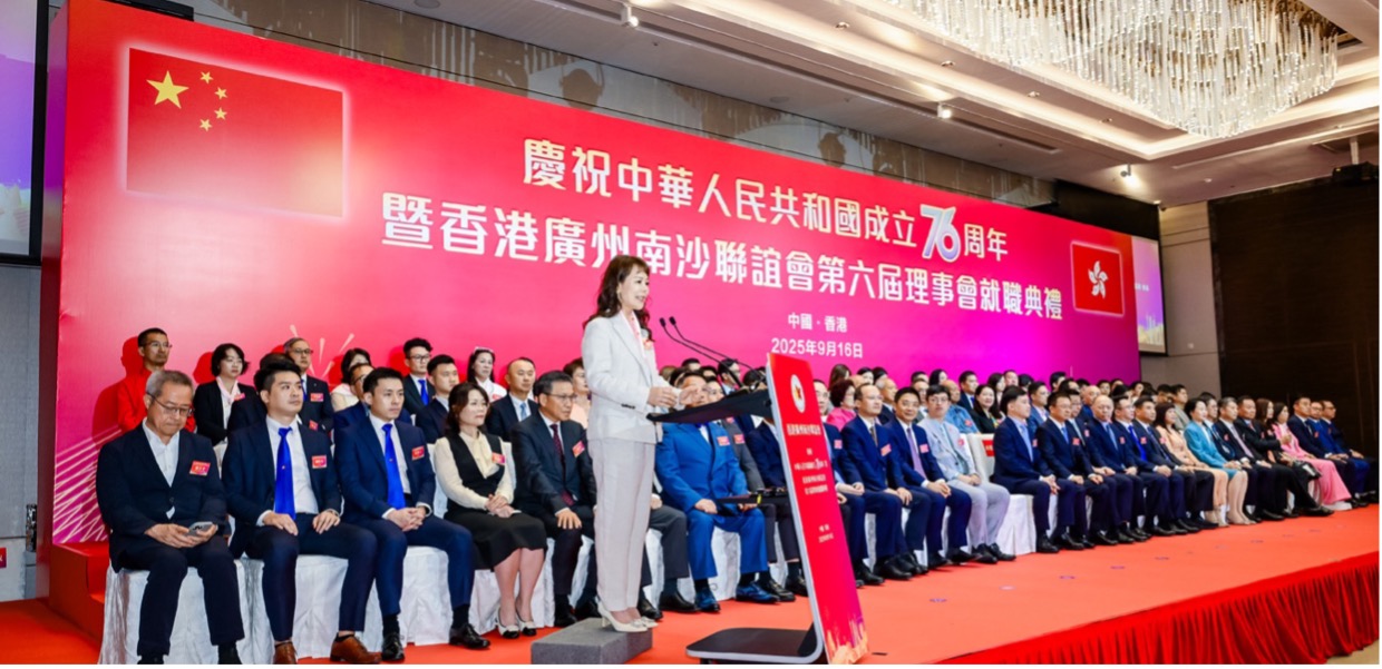 9 月 16 日,庆祝中华人民共和国成立76周年暨香港广州南沙联谊会第六届理事会就职典礼在香港隆重举行。中央人民政府驻香港联络办公室、香港特区政府有关部门,香港广州社团总会相关负责人,广州市和南沙区有关领导,各兄弟社团代表、友好商协会机构代表以及有关重要代表人士等300余人欢聚一堂,共同见证新一届理事会履新,畅叙友谊、共商合作、共谋发展。凭借在粤澳两地的产业协同与社会事务中的积极贡献,开云中国控股集团执行董事廖旭华当选新一届理事会会长。