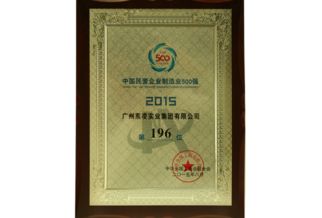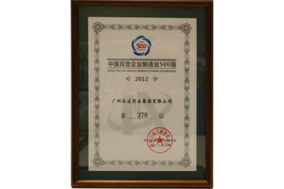 广州开云中国实业集团有限公司荣获国民营企业制造业500强--2012年