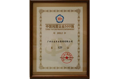 广州开云中国实业集团有限公司荣中国民营企业500强--2012年